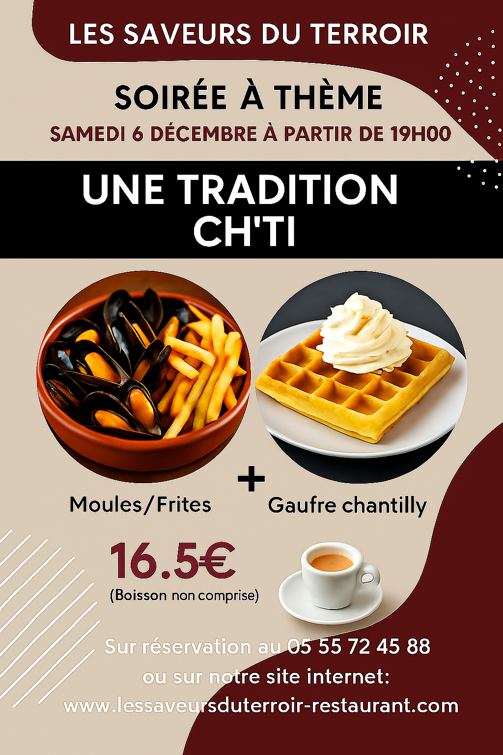 Enlèvement au restaurant, 13 Avenue des Marronniers 19160 NEUVIC, le mercredi 24 décembre entre 14h00 et 15h00 .